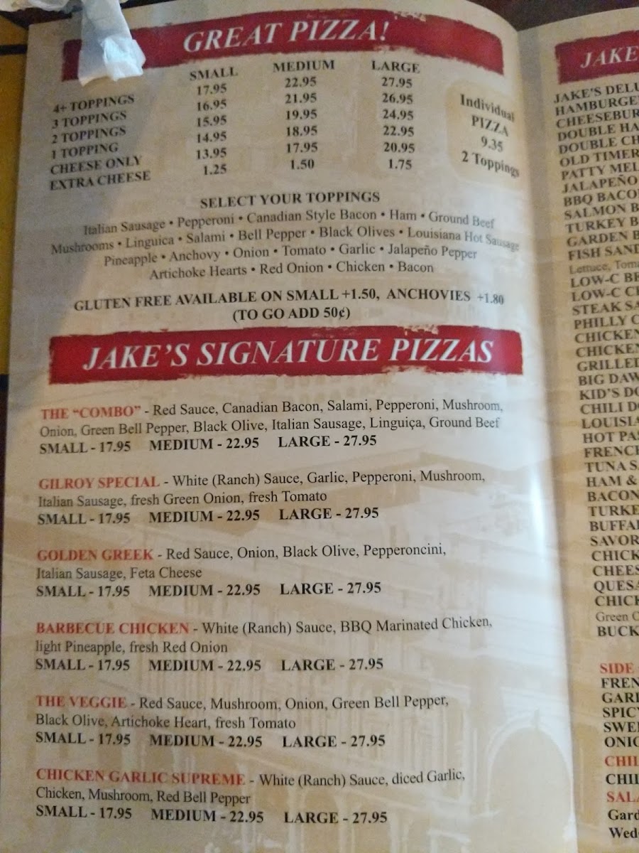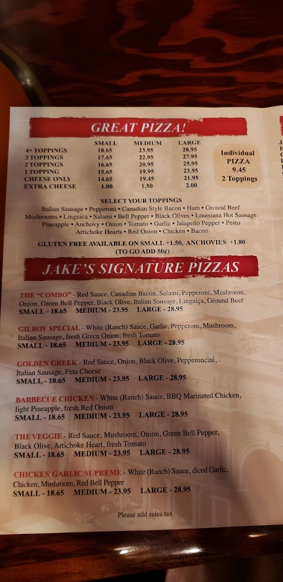 Welcome to Jake’s of Saratoga, a charming pizza restaurant located at 12175 Saratoga Sunnyvale Rd in Saratoga, CA. Known for its inviting atmosphere and delicious offerings, Jake's boasts a diverse menu that appeals to all cravings.